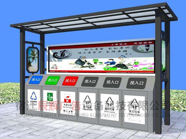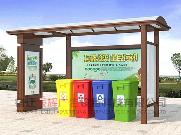 垃圾分類亭一般放在小區(qū)或者公共的地方集合垃圾之用。同樣的材料也可制成配電房、報(bào)亭、崗?fù)ぁ⒕皡^(qū)休息室等。宿遷辰輝廣告設(shè)備科技有限公司,我們的產(chǎn)品豐富多元化,應(yīng)用場景廣泛,也可以根據(jù)客戶的需要來圖定做。